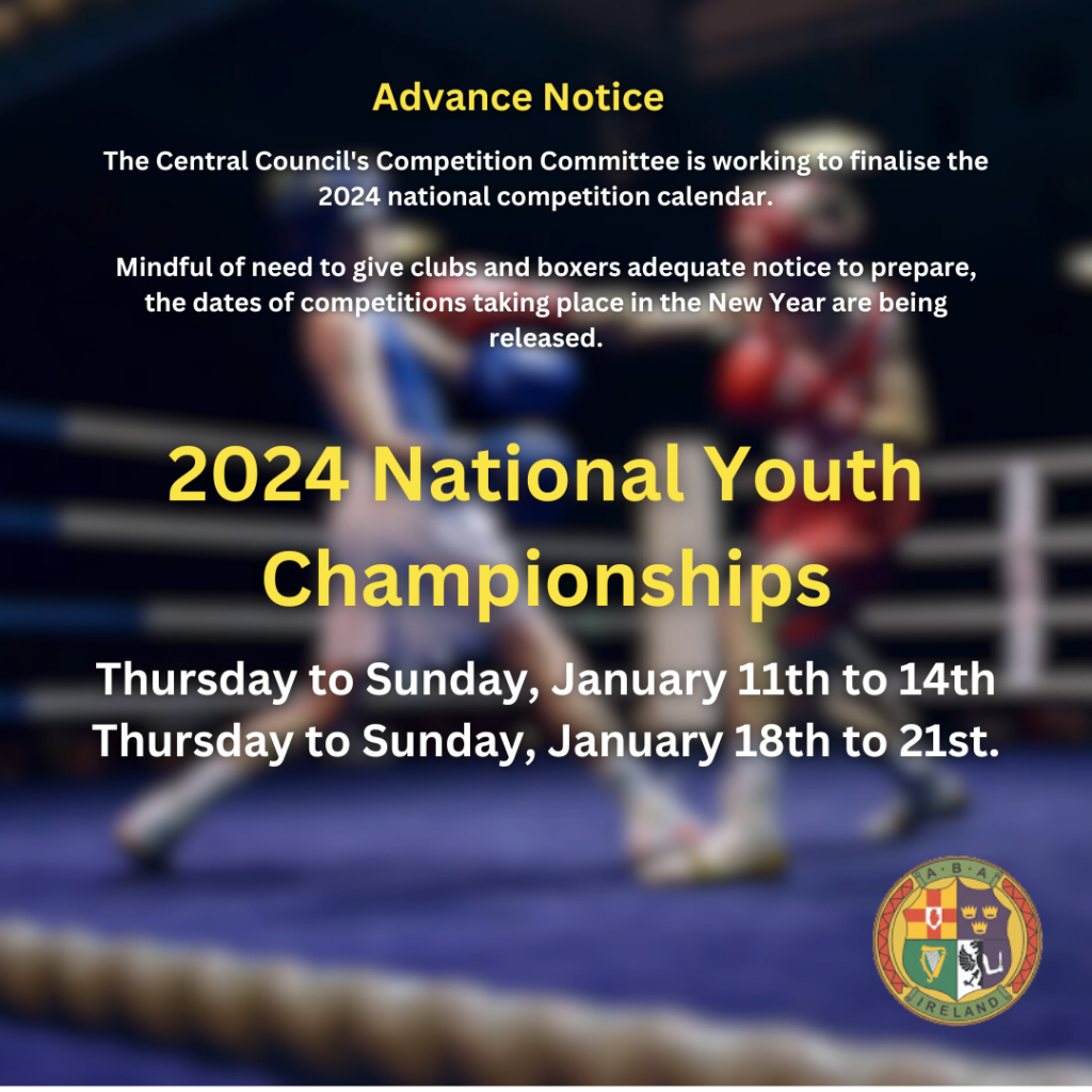 Mindful of the need to give clubs and boxers adequate notice to prepare, the dates of competitions taking place in the New Year are being released.