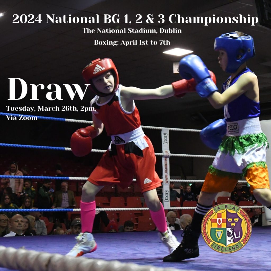 The draw will set the schedule of boxing, and the appointed days of boxing for each age category, BG1-3, during the period April 1st to 7th.