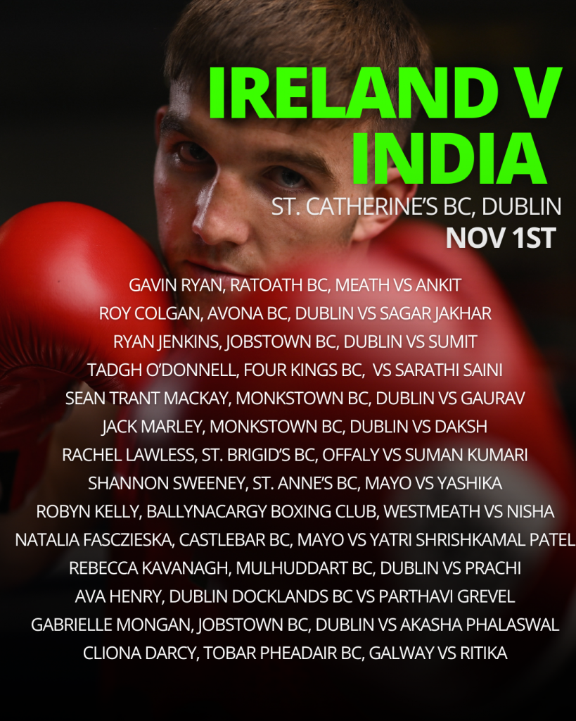 On Saturday, Team Ireland will take on India at St. Catherine’s Boxing Club, Dublin, in the first leg of the series.
