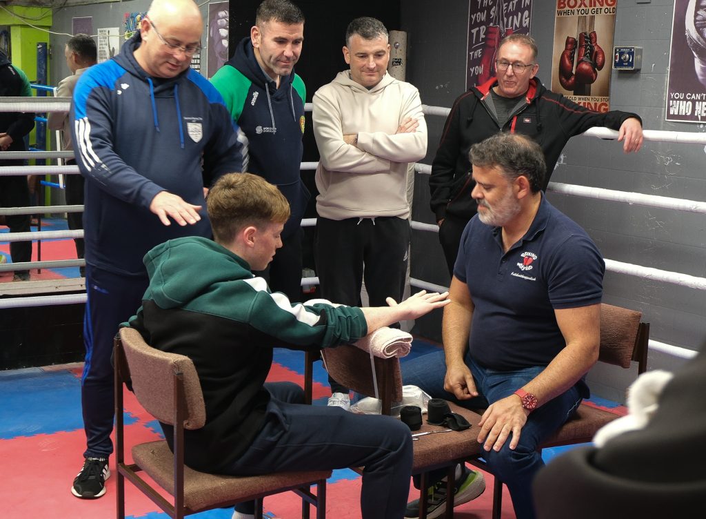 A full-to-capacity Cuts & Wraps course, delivered by Ian Gatt, GB Boxing’s Head of Performance Support. Ian has been a sports physiotherapist for over 25 years, leading the medical and science services for the Great Britain Boxing program. This course has been shaped to combine effective methods of being an effective Wrap-person and Cut-person in both training and competition settings.