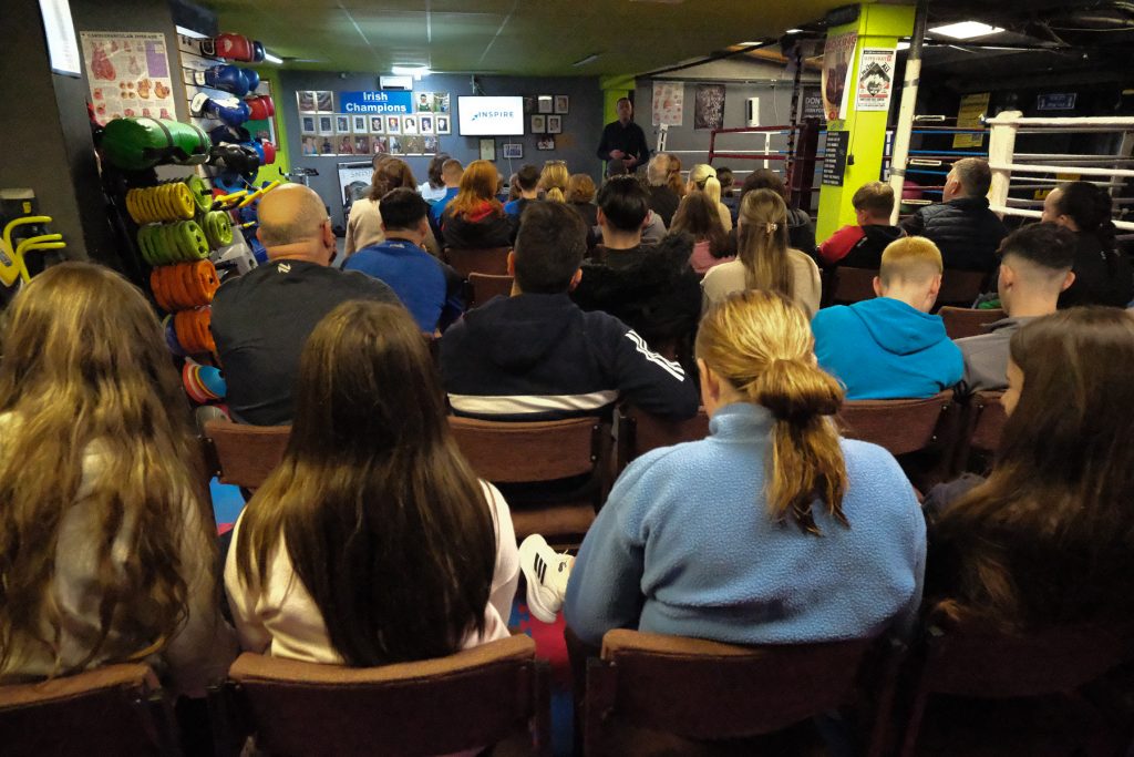 There was a packed house, of over 50 people, for Swinford BoxCon’s Sports Psychology workshop, delivered by Richard Shanahan, who has worked alongside the Boxing High Performance Unit in preparation for the Paris 2024 Olympic Games. It aims to enhance athletic performance and well-being by helping athletes understand their behavior, develop mental skills like focus and confidence, and manage issues such as anxiety and burnout.