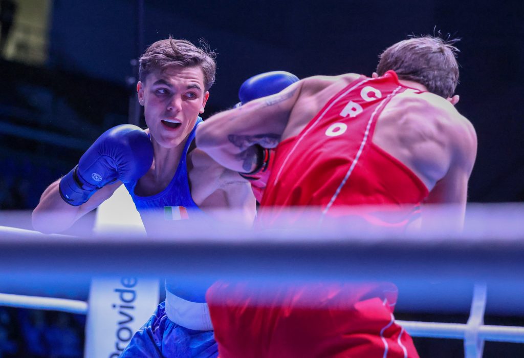 70kg Tadgh O’Donnell is one win away from a medal following a dominant 5-0 win over Croatia’s Petar Kresimir Knezevic – his second win on the trot. Judges scored that bout: 27:30; 27:30; 26:30; 27:30; 27:30. Tadgh boxes for a medal tomorrow, against Welsh boxer Orlando Holley-Sotomi.