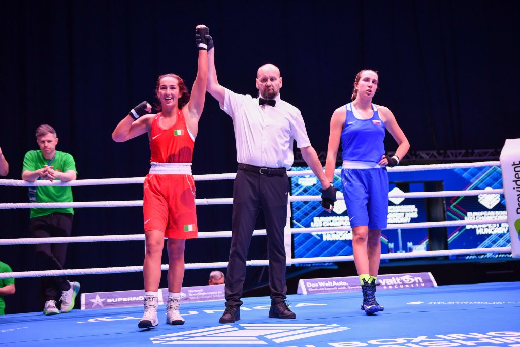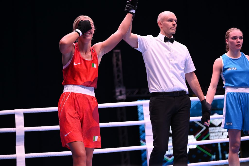 60kg Rebecca Kavanagh has won through to the quarter finals, following victory over Latvia’s Laura Jakovleva in tight contest, which was awarded to Rebecca 3-2. Judges scored the bout 29:28; 29:28; 27:30; 28:29; 29:28. Rebecca boxes for a medal against Lithuania’s Beatricé Savickaite tomorrow.
