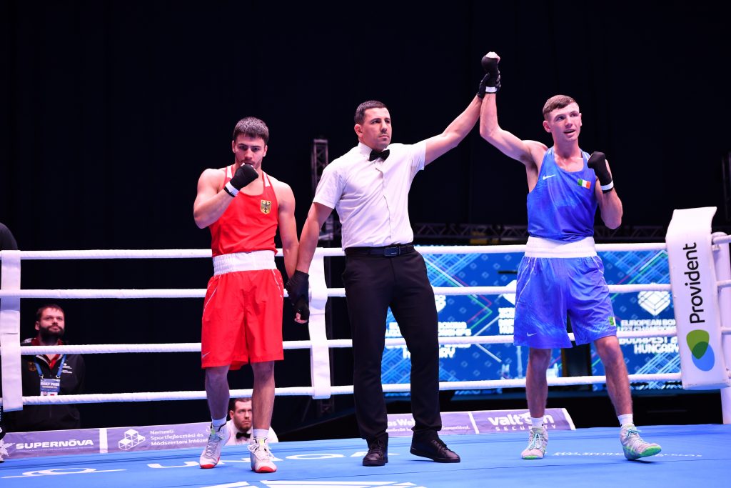 65kg Roy Colgan is a quarter finalist, following a 3-2 split decision win over Denis Bril of Germany, scored 30:26; 29:27; 27:29; 28:28 *; 27:29. Roy will box for a medal on Thursday, against Ukraine’s Artur Kuzmenko.