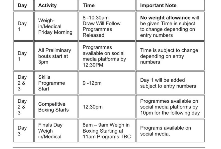 There will be twenty bouts, in all, beginning at 11am.