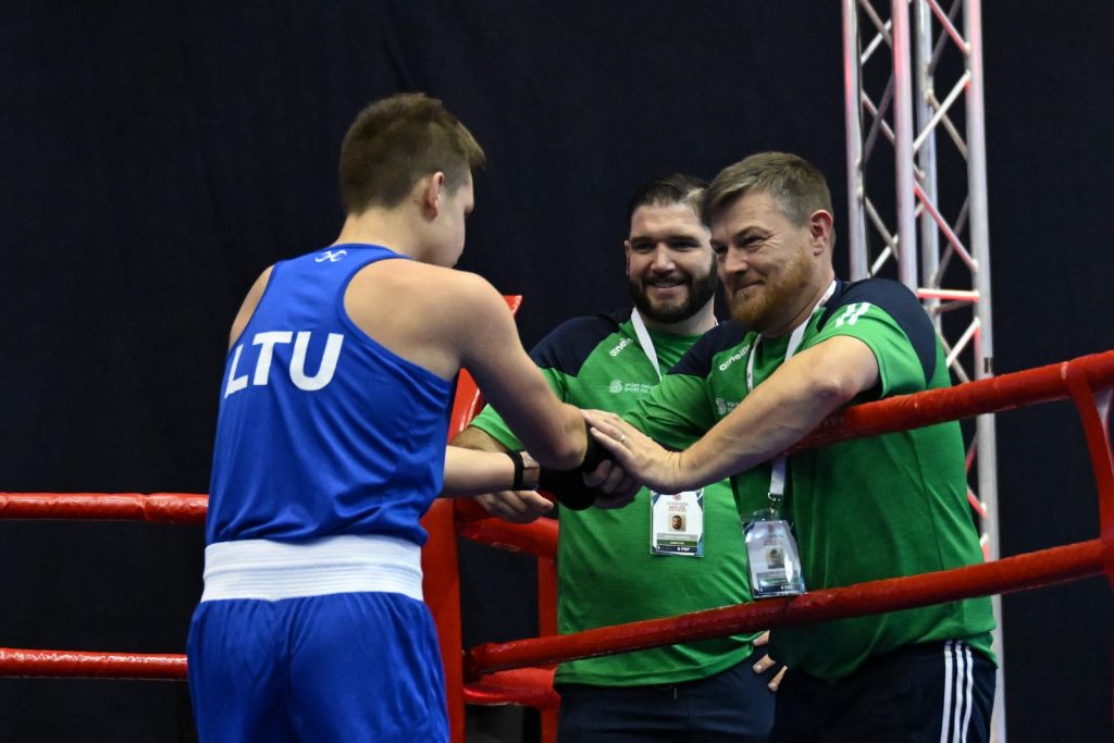 While 63kg Charlie Joyce Connolly was the final member of the team to box a quarter final – he was in action today against Lithuania’s Danas Sestakovas and was the 5-0 scored 30: 27, 30: 27, 30: 27, 30: 27, 30: 27. Charlie will box his semi final tomorrow, against England.