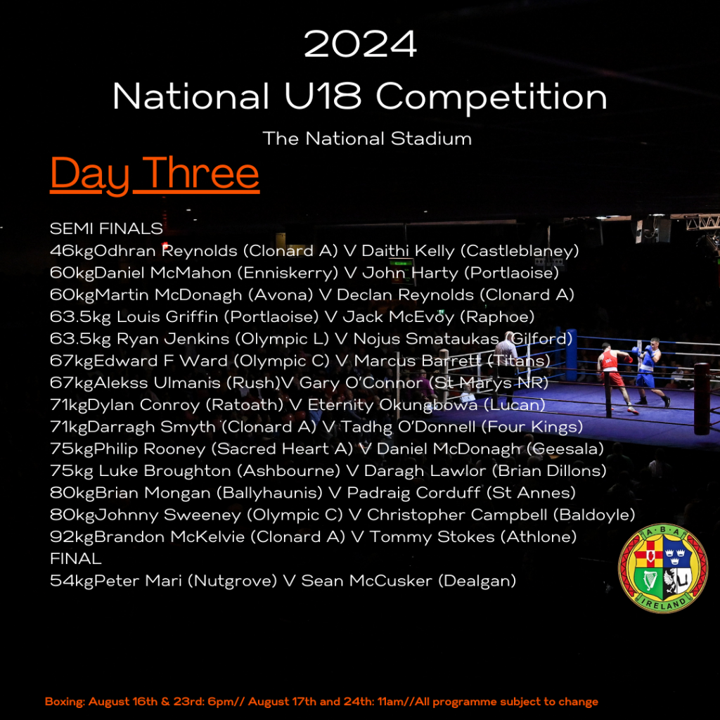 Saturday, August 24th: boxing begins at 11am.