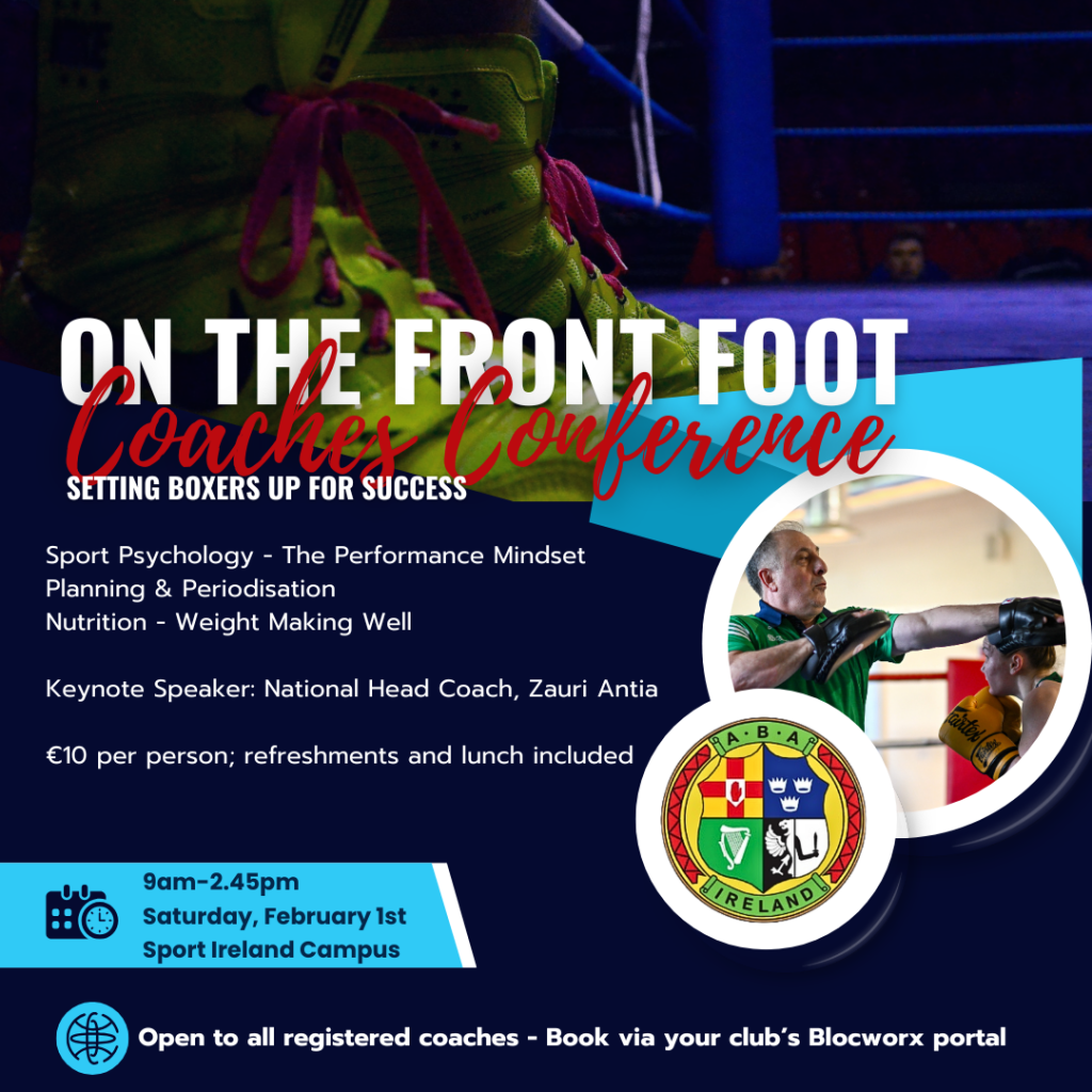 Organised by IABA Education and Training Officer Nikki Foley, this conference is aimed at empowering coaches with performance and planning up-skilling, information on nutrition and performance mindset and providing coaches with an opportunity to explore continued development in support of boxer success. For more information contact Nikki Foley via nicola@iaba.ie