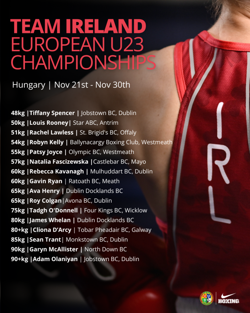 The team is comprised of 2025 National U23 champions, and includes World bronze medalist Patsy Joyce, World Boxing Championship boxer Louis Rooney – who was a 2024 European U23 champ, 2024 European U23 bronze medalist, Robyn Kelly, World Youth champions Cliona Darcy (2022), and Adam Olaniyan, 2024 European Youth champion, Ava Henry and 2022 European Junior champion Tadgh O’Donnell