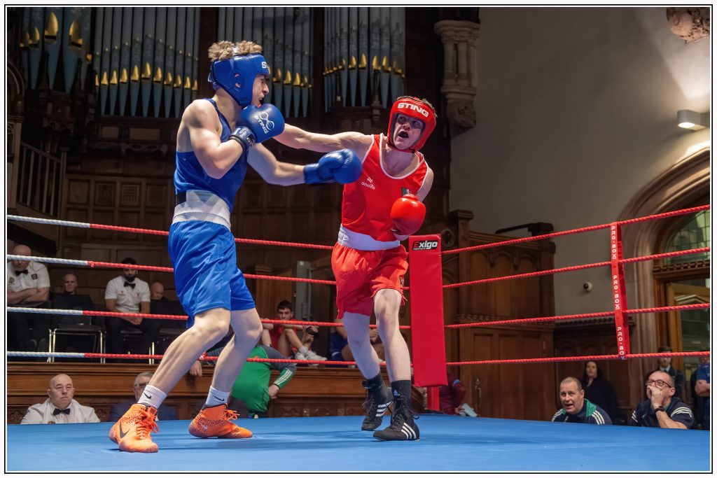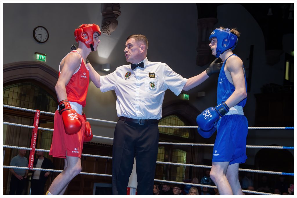 54kg James McCann, St. Monica’s ABC, Newry beat Reon Wright, Wales, 3-2