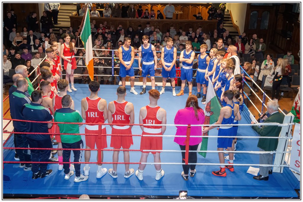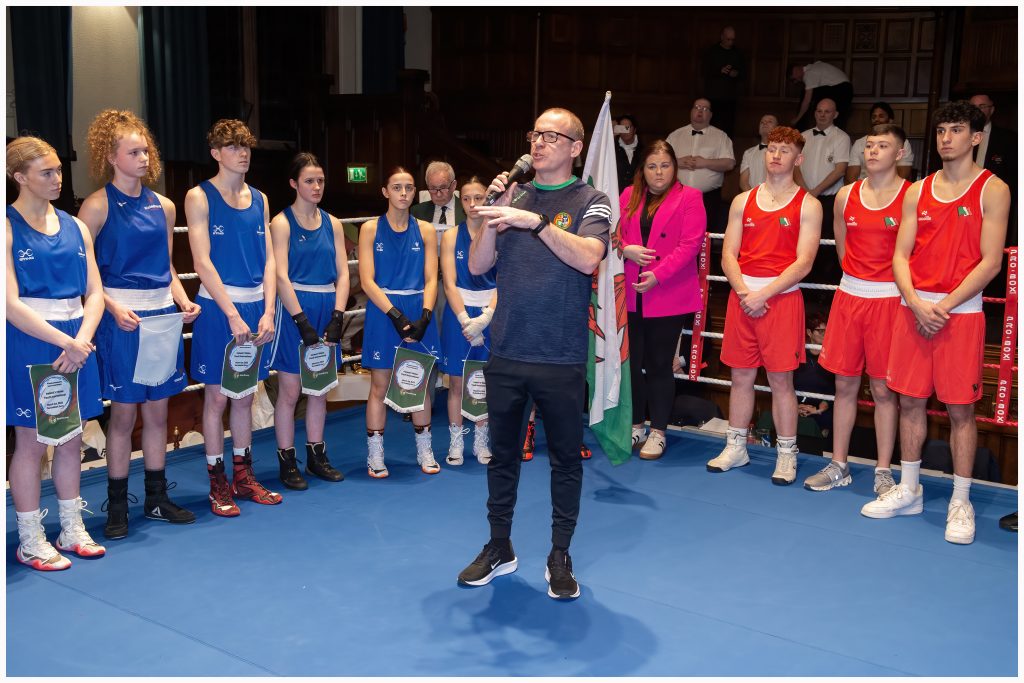 He spoke of the auspicious nature of the occasion, coming at a time of turbulence for boxing at home and abroad. He said “hopefully, pieces have fallen in to place recently where we can, once again, look at the five rings of Olympic boxing in LA, where some of these youngers can actually be over there, representing Ireland and Wales at the Olympic Games in three years time”. He extend his thanks to Team Manager John Gallagher, all sponsors, and the Cental Council of the IABA, who work tirelessly for boxing.